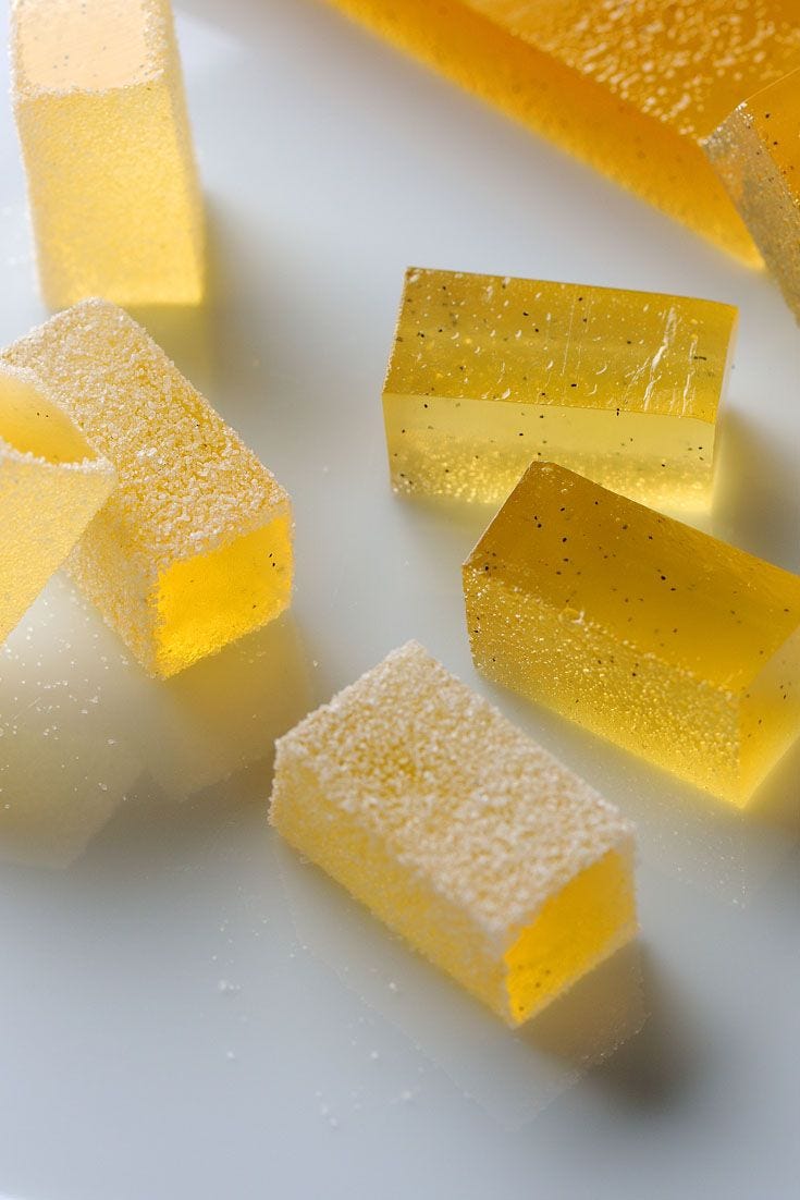 These sweet pear jellies from Michael Wignall would be the perfect way to round off a dinner party, with a hint of boozy pear liqueur to balance out the overall sweetness. These would also make a wonderful edible gift as an alternative to chocolates or truffles.