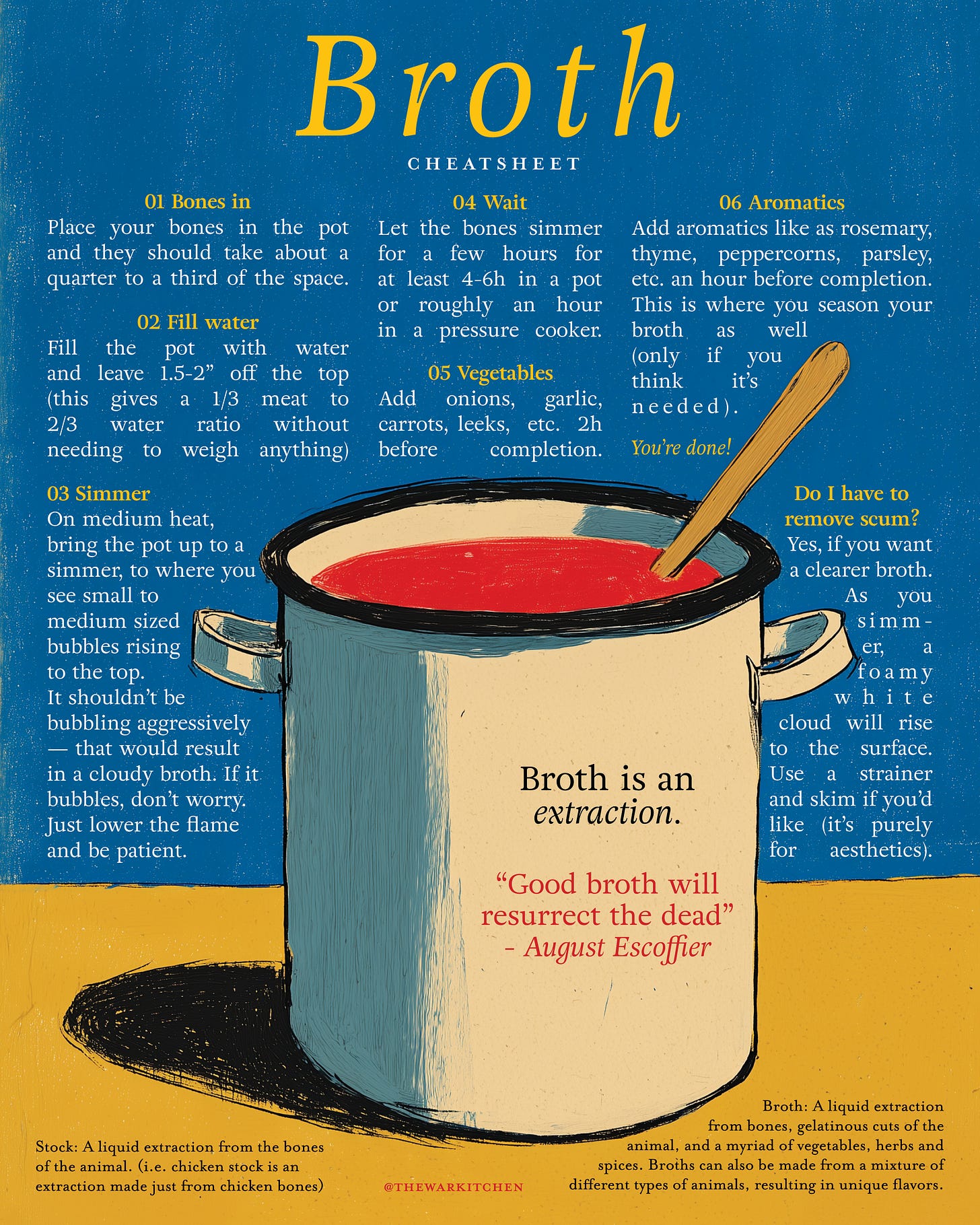 Good broth resurrects the dead. Keep this broth cheatsheet handy for the next time you make nourishing broth. Your gut will thank you.