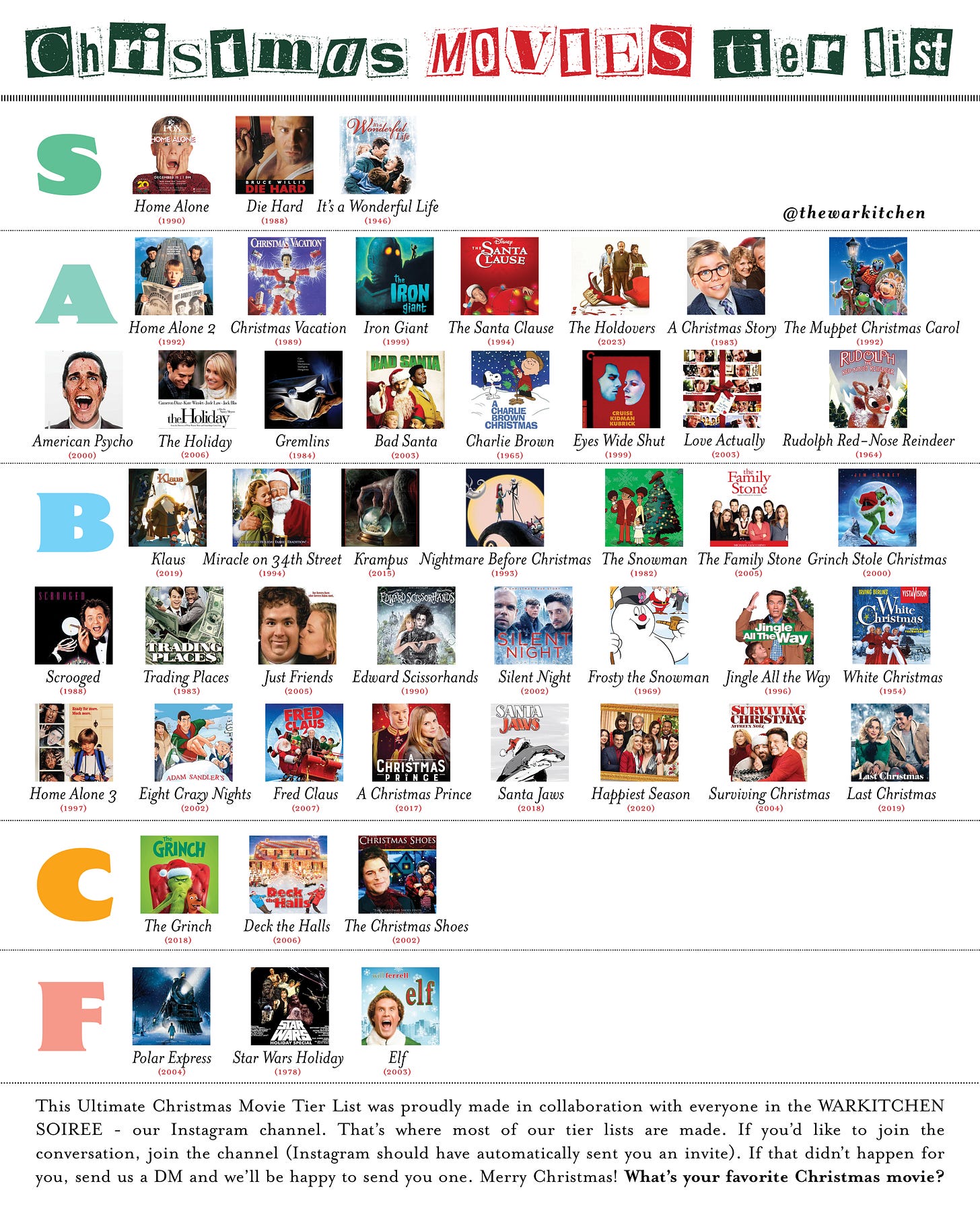 Is Die Hard S tier? You can bet it is. Home Alone? Absolutely. A Christmas staple. It’s a Wonderful Life? A shoo-in.