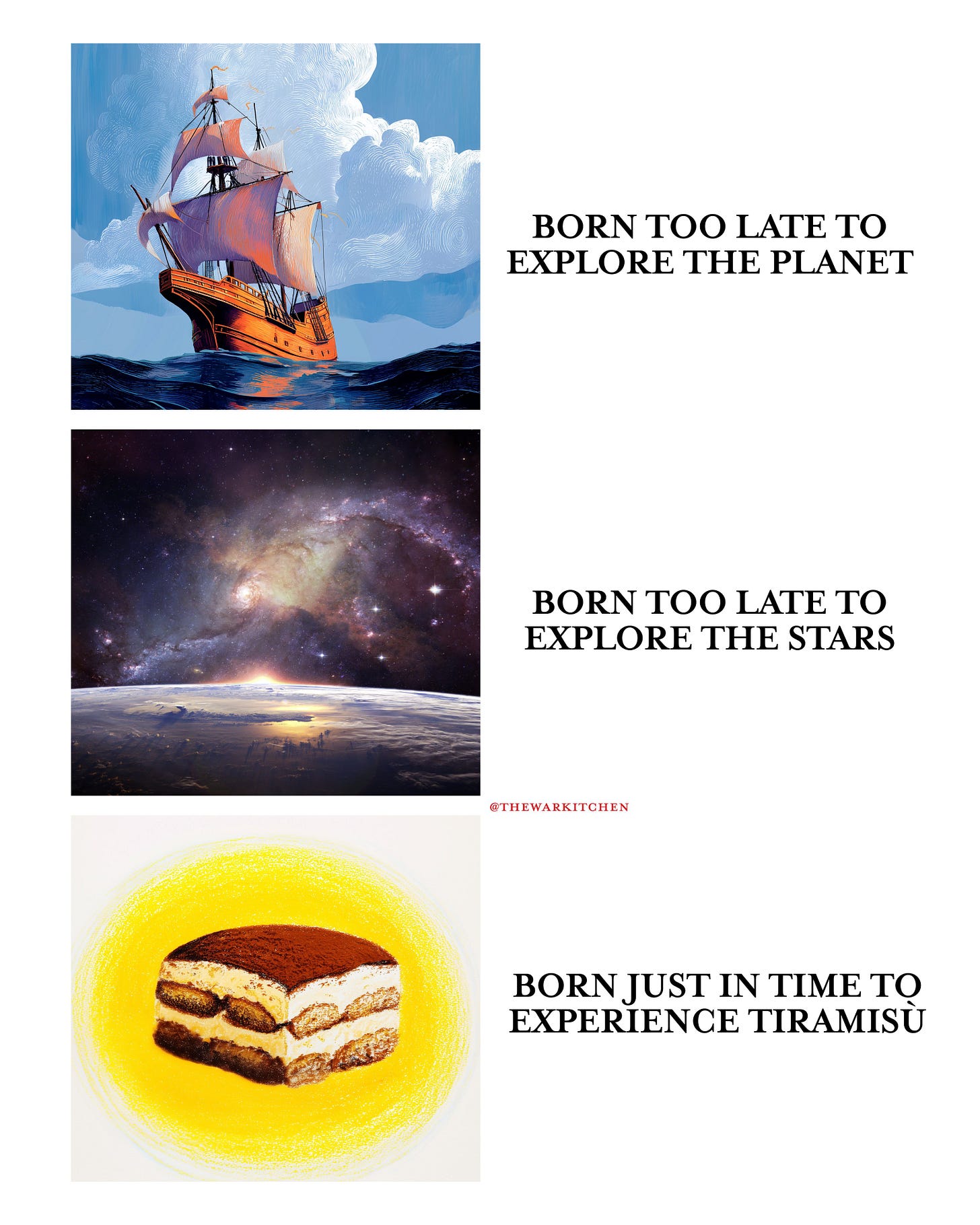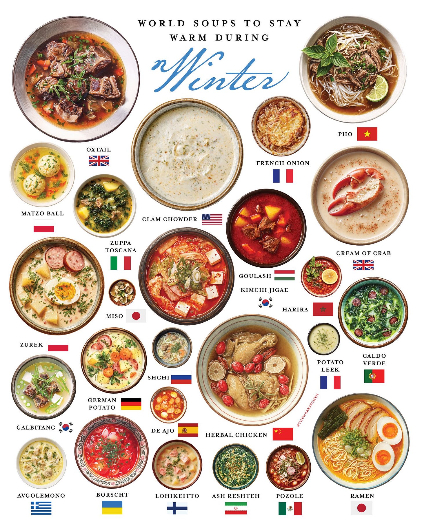 Herbal chicken soup, an entire wheel of parmigiano reggiano, dark cacao, yogurt, oysters with lemon.