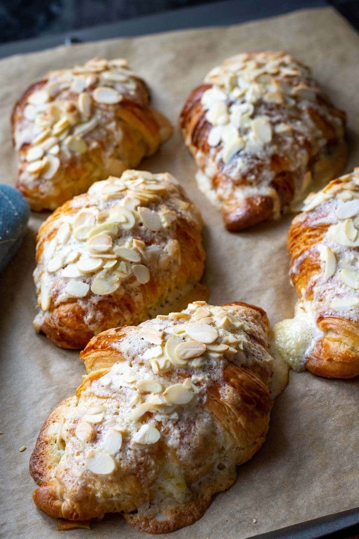 How about treating yourself to deliciously flaky Almond Croissants? Better yet, made with leftover Sourdough Croissants! What better way to use up sad-looking leftover pastries than filling them with a nutty almond filling and baking them again with crunchy flaked almonds on top?