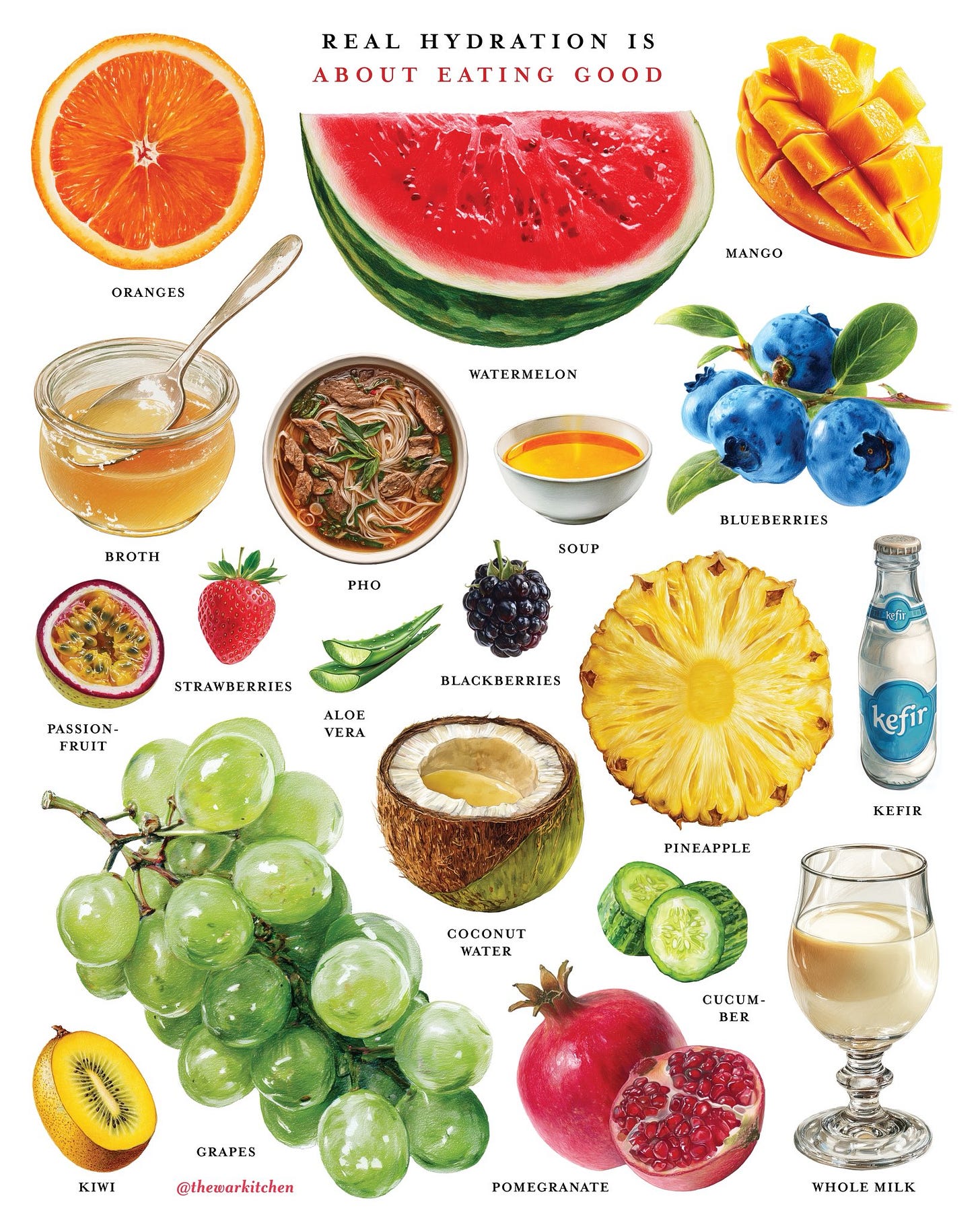 As the days get warmer, don't forget that sometimes the best way to stay hydrated is to eat more beautiful food. Enjoy a juicy mango. Snack on berries. Eat more pineapple. This way, you're nourishing yourself with all the electrolytes and natural sugars that you're not getting when you just drink gallon after gallon of purified water.