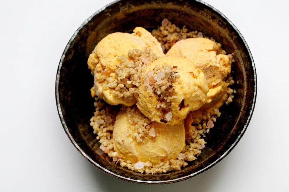 “Roasted carrots lend their sweetness and a lovely color to this ice cream, which is graced with a terrific crumble.