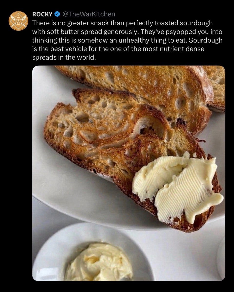 You need to be romanticizing life. Allow yourself the luxury of completely disconnecting. Savor a perfectly toasted slice of sourdough with soft, raw butter. It's the greatest vehicle for one of the most nutrient dense spreads in the world 🤍