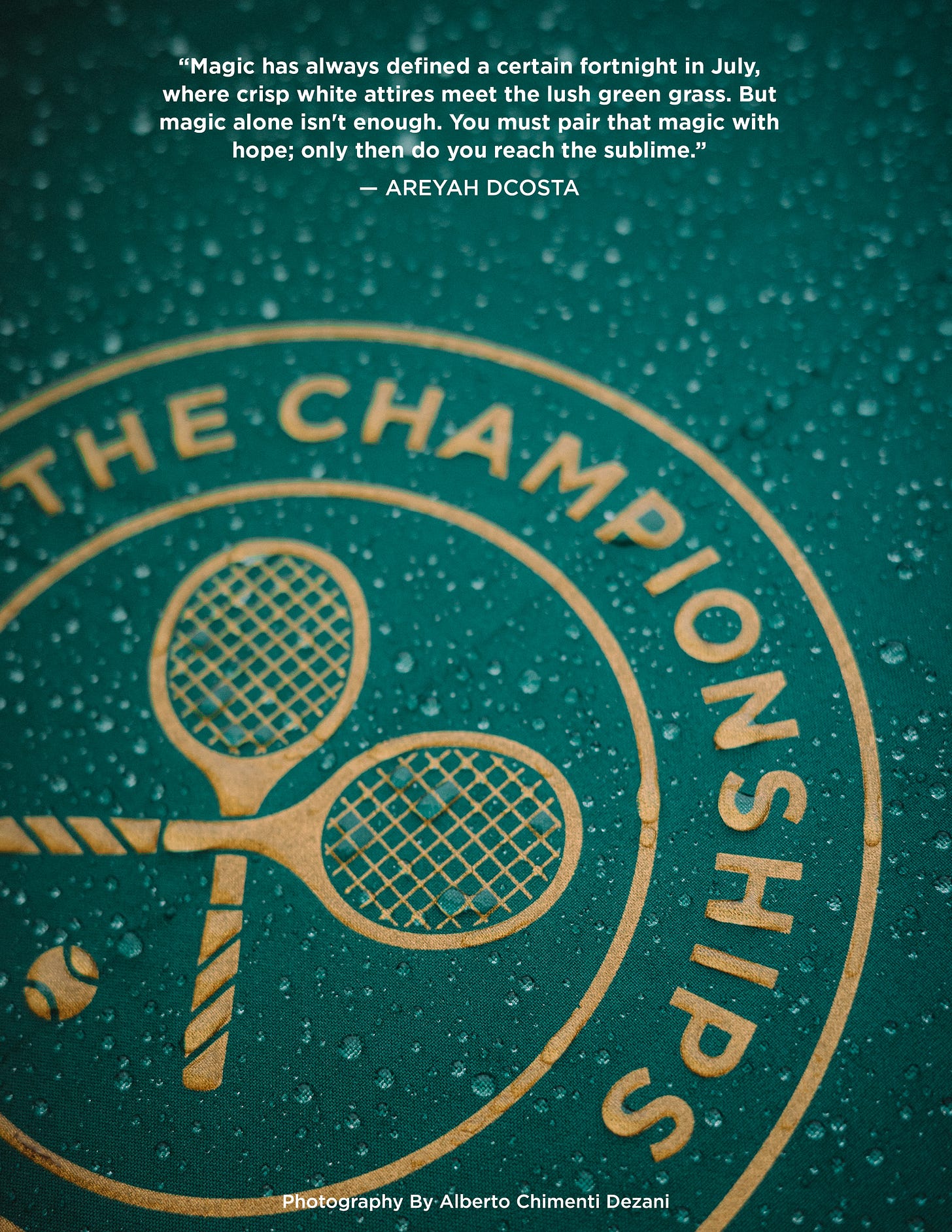 Magic has always defined a certain fortnight in July, where crisp white attires meet the lush green grass. But magic alone isn't enough. You must pair that magic with hope; only then do you reach the sublime. That’s when you realize you’ve stepped into a place where childhood dreams aren’t just remembered but honored. Served up gently, like strawberries and cream, on silver spoons of tradition. A place where time pauses, just enough for wonder to take root. Where the erratic weather lingers just enough to choose its champion. And where tradition doesn’t merely exist but forms the heartbeat of it all.