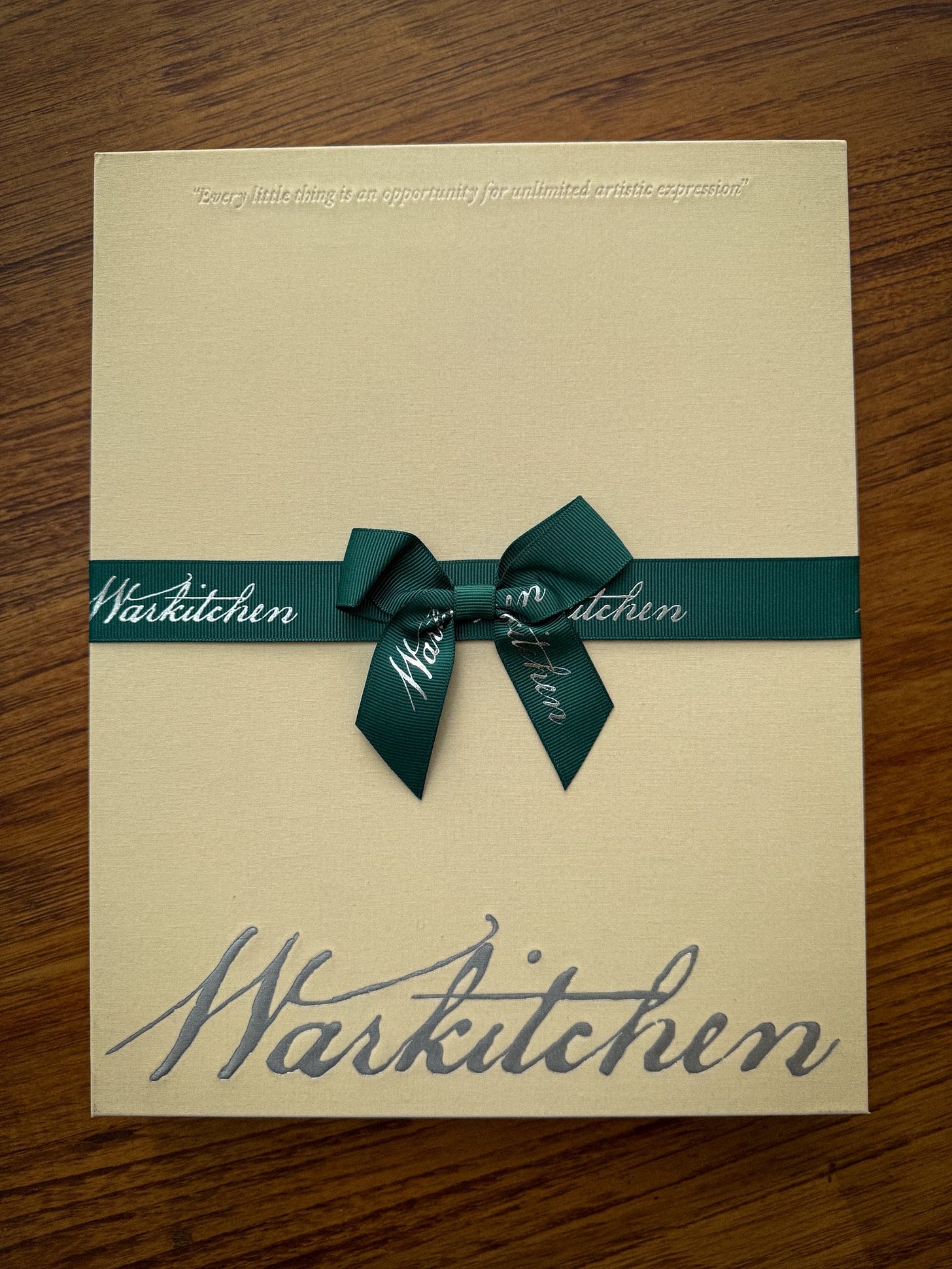 Each print’s sized 8.5” x 11”, printed on 350gsm art paper with a protective matte finish. The entire collection rests in a bespoke WARKITCHEN linen gift box that’s finished with a midnight green grosgrain ribbon.