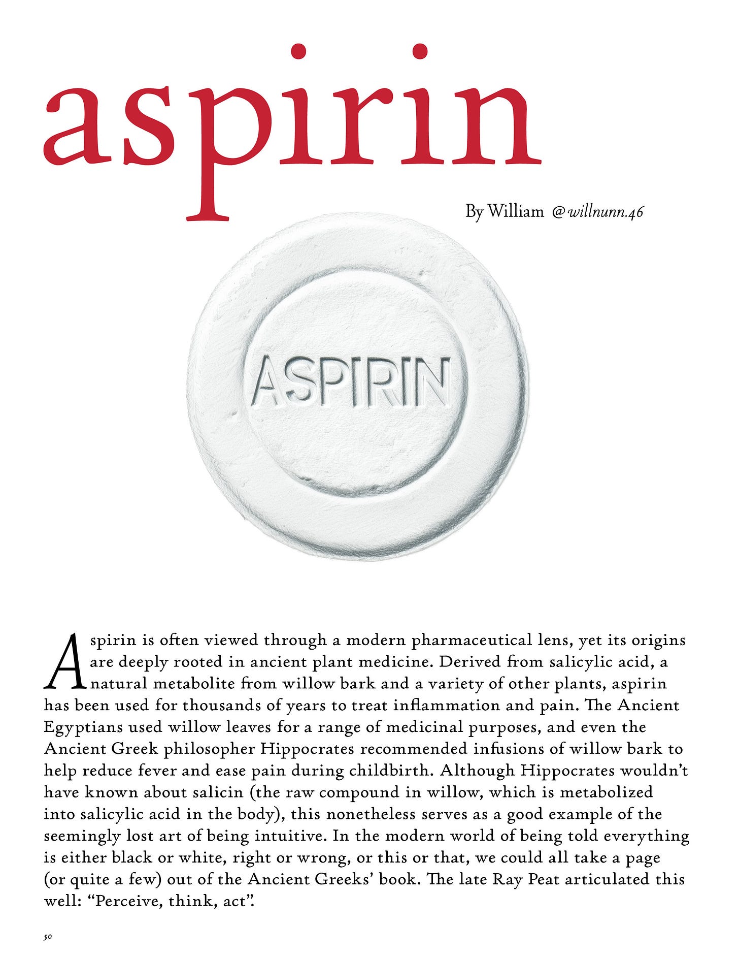 “Aspirin was revolutionary during the early 20th century, not only because it was more effective and better tolerated than the other over-the-counter pain relievers, but also because it proved to be paramount in treating soldiers’ pain and fevers during WW1.”