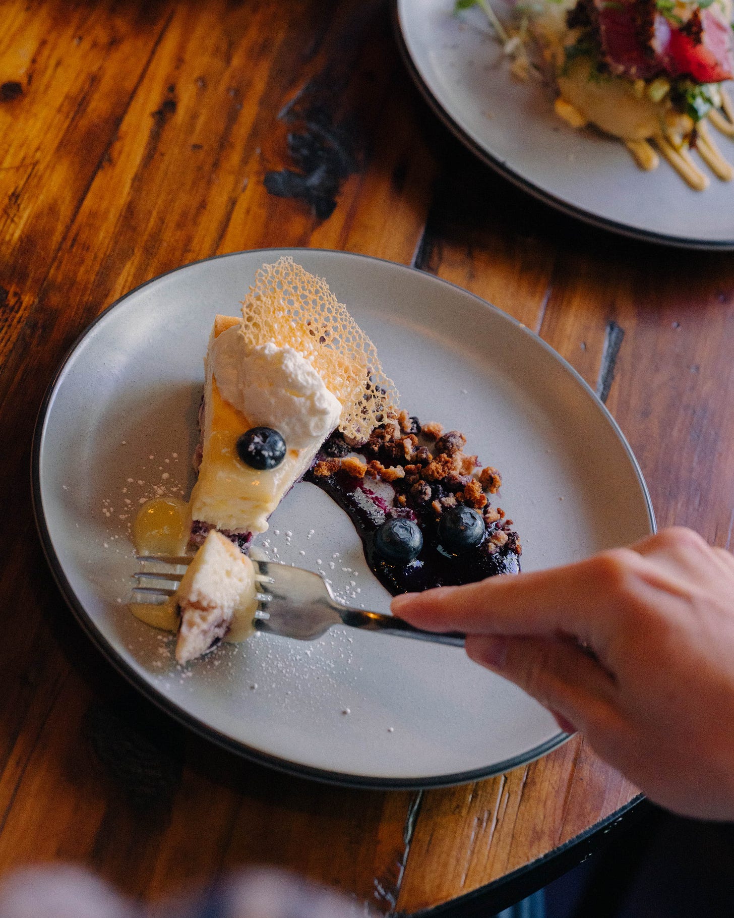 We ate cheesecake for dessert. But it wasn’t just another cheesecake. At first glance, it was a classic iteration: blueberry glaze, whipped cream, and cinnamon crumble. However, under an inch of cheesecake was a spongy foundation of blueberry pancake. This combination, Daniel mentioned, was technically difficult, taking Chef Aaron some time to master. Again, the ordinary was elevated. For those looking for more sweets, Table Salt also has an auxiliary “chocolate room,” where customers can do artisan truffle tastings, paired with wines and whiskeys. Daniel’s wife, Angelica, is a chocolatier and drives this unexpected element of the restaurant.