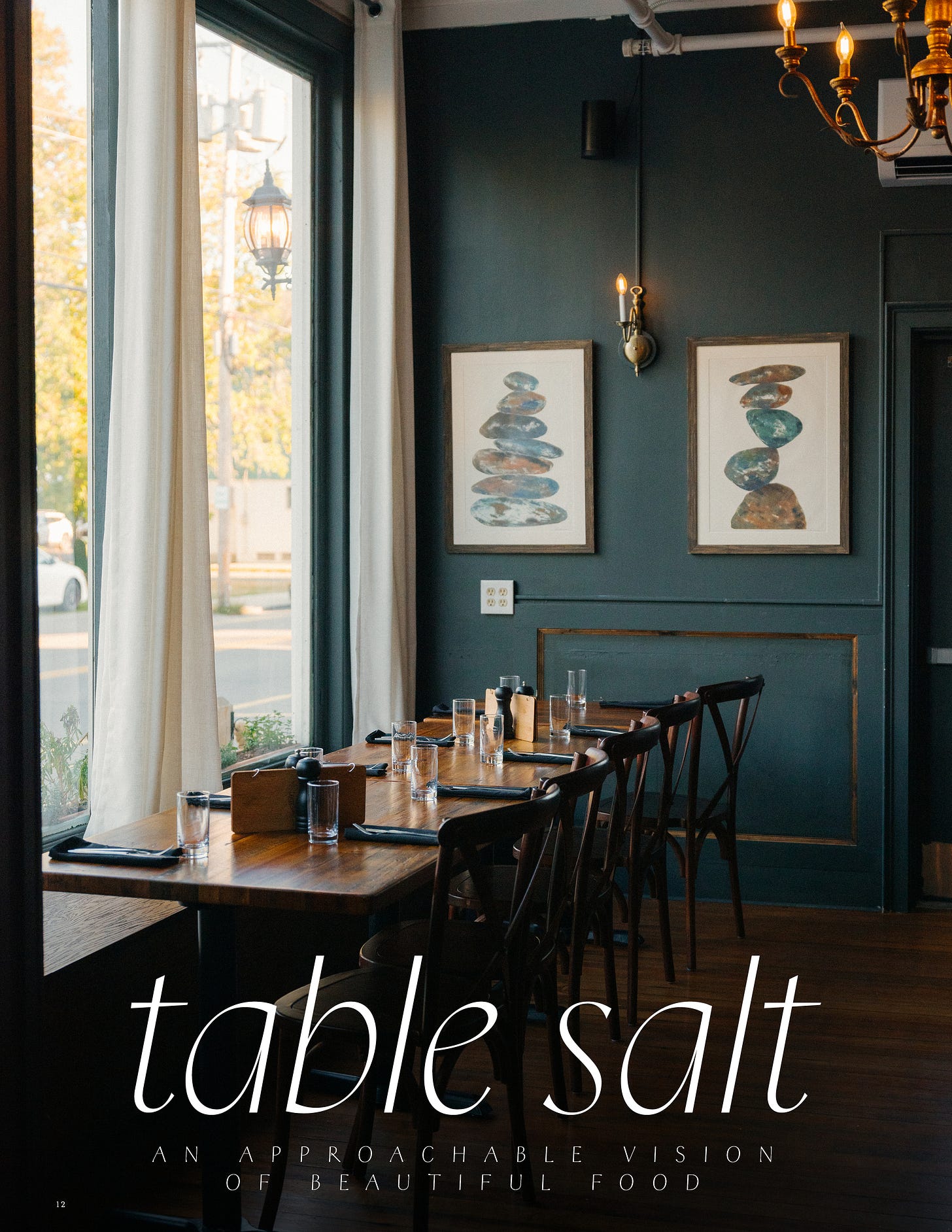 There’s a new restaurant in Bar Harbor, and if the food and operating philosophy are indications of success, it will be serving patrons a very, very long time. Owner Daniel Bockman, a restaurateur from Nashville, opened Table Salt on May 21st, 2025. He and his chef, Aaron Horvath, have quickly established a menu and atmosphere that are “approachable but elevated.” You see this balance from the moment you enter the building. The remodeled Chinese restaurant (you’d have never guessed) is relaxed but without the slackness of ill-design. The waiting staff wear t-shirts but bring a level of service that is meticulous, friendly, and with the manners of a fine dining experience. Even the name itself evokes Daniel’s vision of balance: table salt is common, but it can transform and elevate a dish.