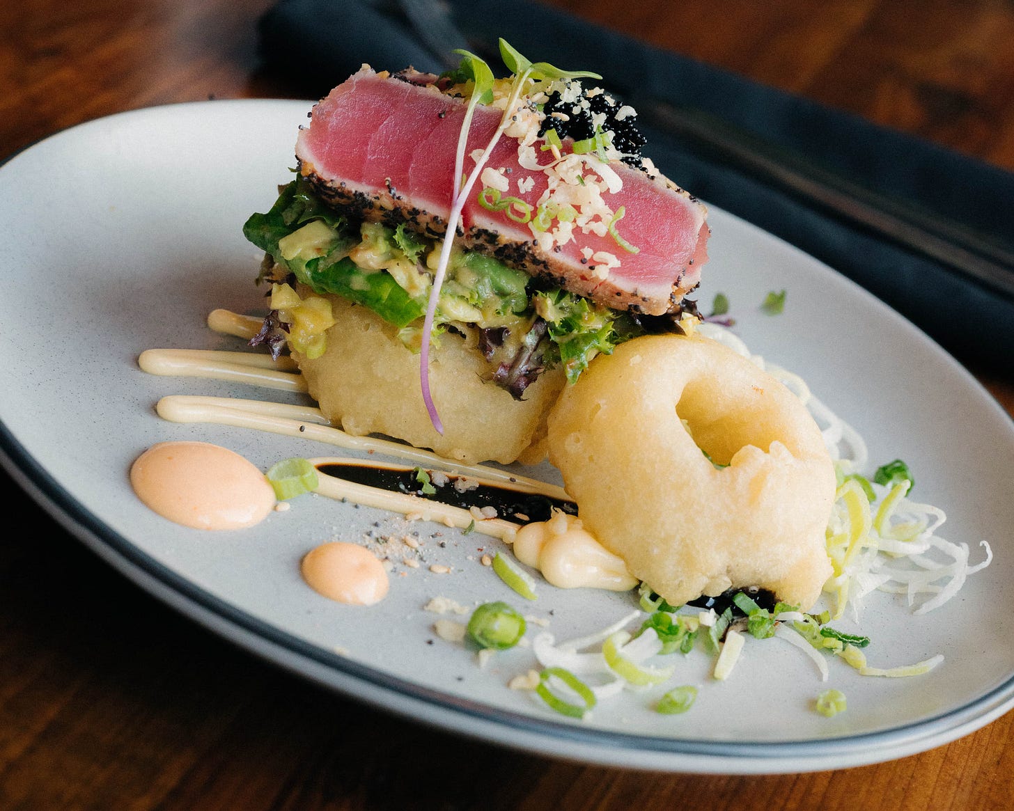 Next was a seared yellowfin: three gorgeous slices of tuna draped over a bed of diced avocado and mango, stacked on an onion ring. The dish was a lovely example of the restaurant’s ethos in action. On the one hand, the glistening pink tuna - contrasted with vibrant yellows and greens - was plated with refined elegance. There was a wonderful height to the dish; the tuna appeared suspended in midair. And yet, on the other hand, the foundation of the dish was familiar. What is more approachable than an onion ring? Both worlds were seamlessly combined.