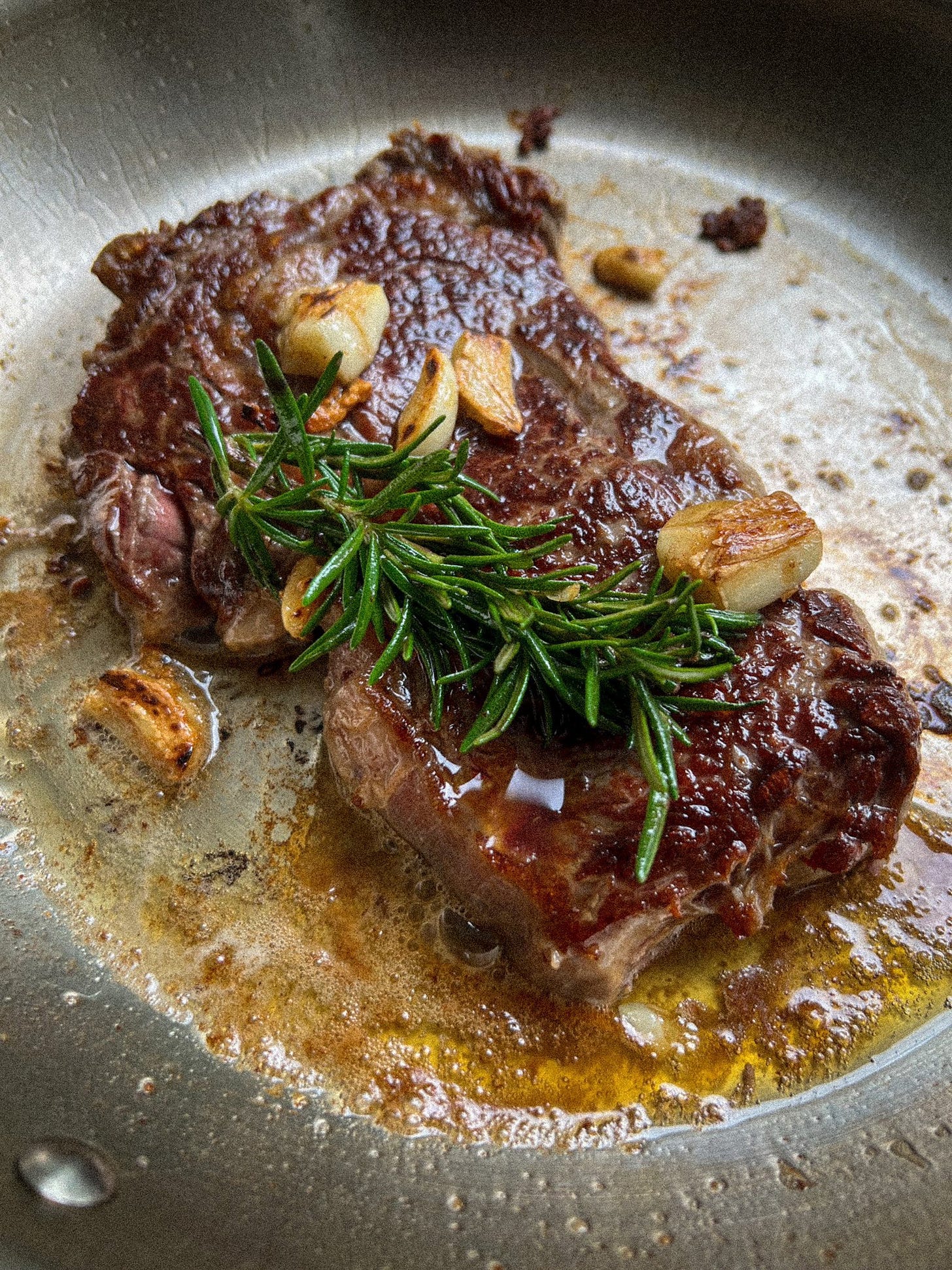 You need to simply wait. Let the pan work its magic and create a beautiful crust on the steak. This is the majority of the cooking time. When you flip, it should peel off easy. Once flipped is where you baste it with the good stuff. Cloves of garlic, fresh herbs. What I’ve just described is a simple pan-fry with ONE flip, where you baste at the end. I’ve found this to be the best for the average 1.5” steak. You really don’t need to reverse sear or do anything fancy. For thicker cuts, finish in the oven after you flip.